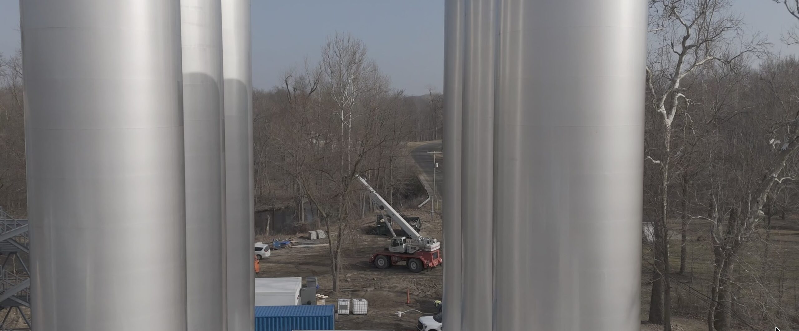Another step forward with the installation of the plants six fermenters. The 76 foot tall tanks manufactured by JBF Stainless each will hold 60,000 gallons of fermented permeate.