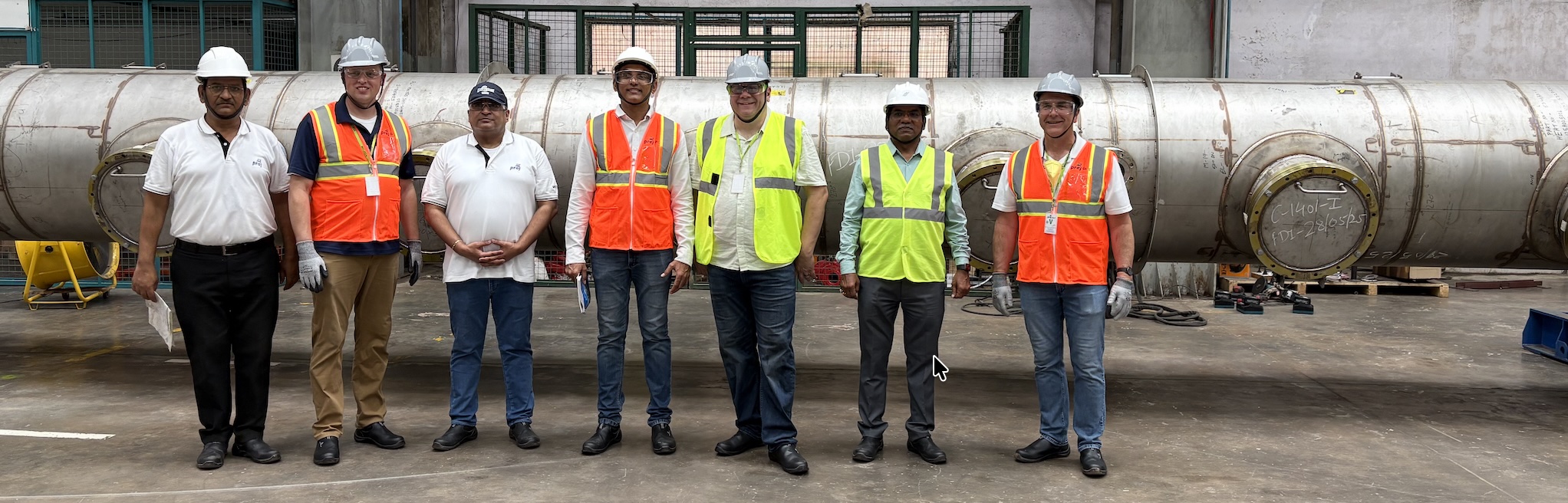 DD Biofuel selected leading distillation vendor Praj Industries for the Constantine ethanol plant. Praj has been delivering distillation equipment since 1983. Praj was selected for its platinum reputation and lower distillation carbon intensity. DD Biofuel CTO David Geros and Dan Vos project managers Brad Ellens and Jeff Boot had the pleasure of visiting the Praj factory in Pune, India to inspect the distillation system under construction.